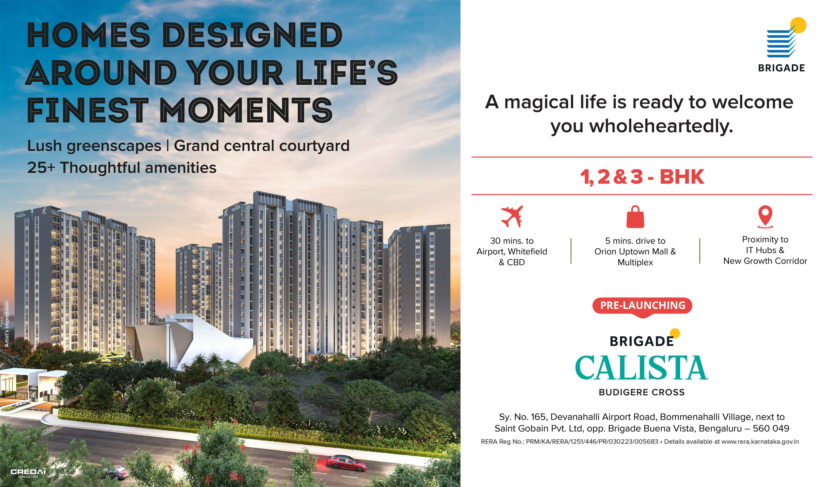 Brigade Calista, Devanahalli Airport Road, offers 2, 3, and 4 BHK spacious apartments with high-end exteriors and interiors. These Old Madras Road Apartments Aim to Redefine Luxury Living in Bangalore.